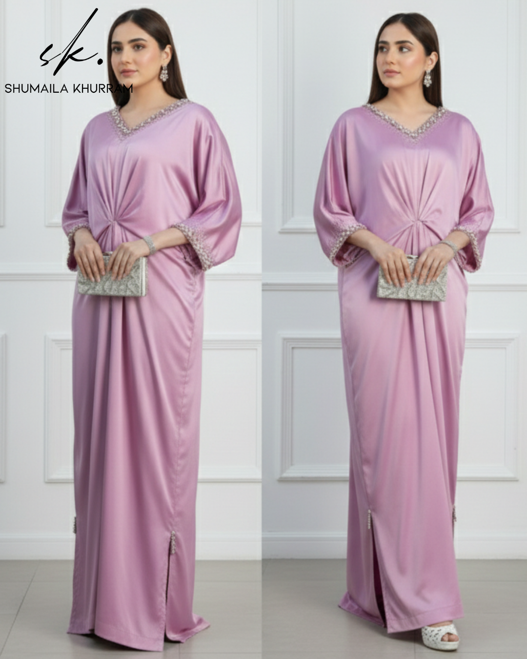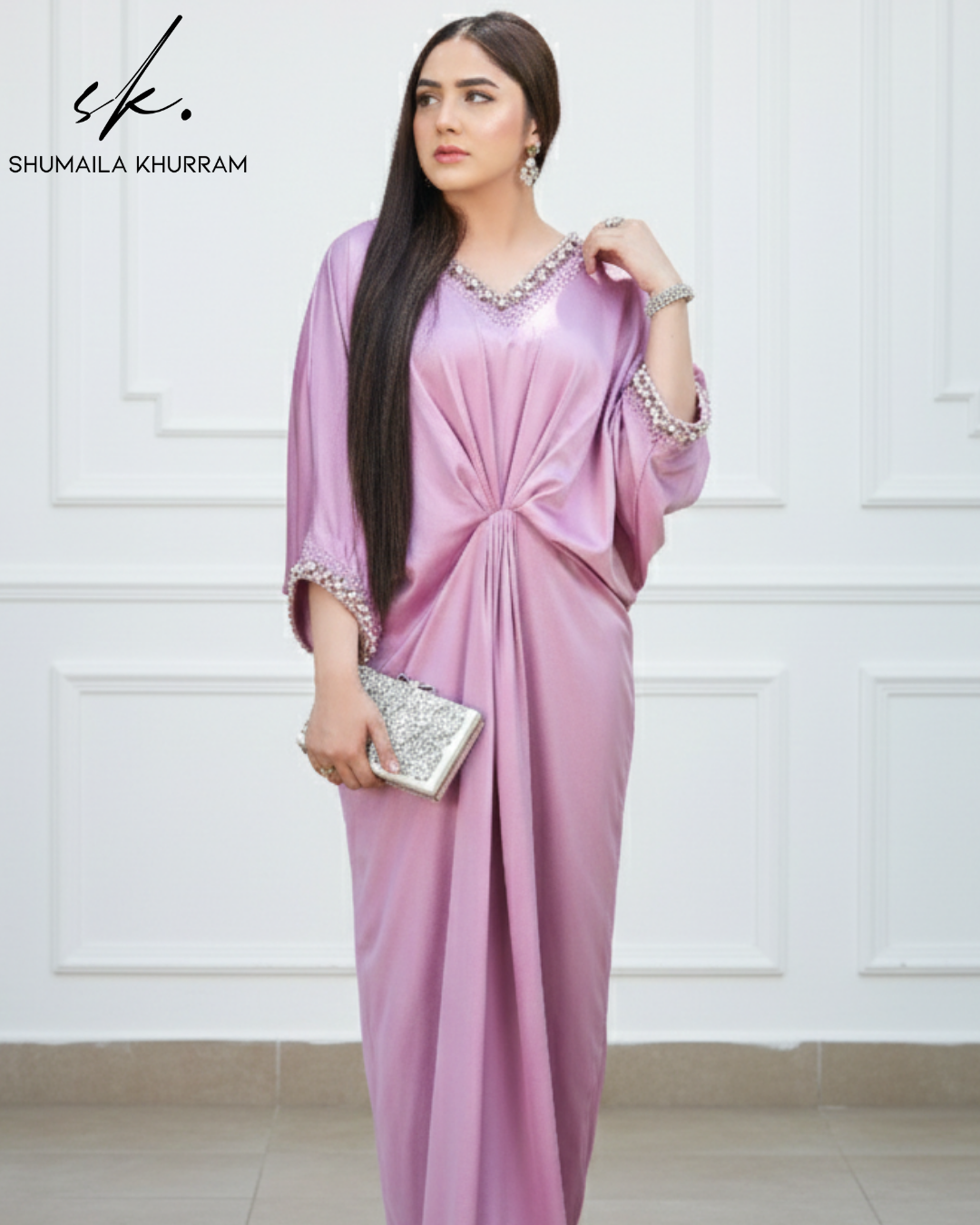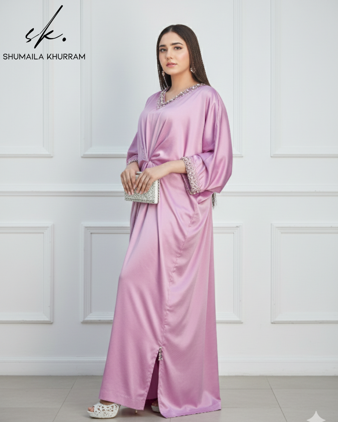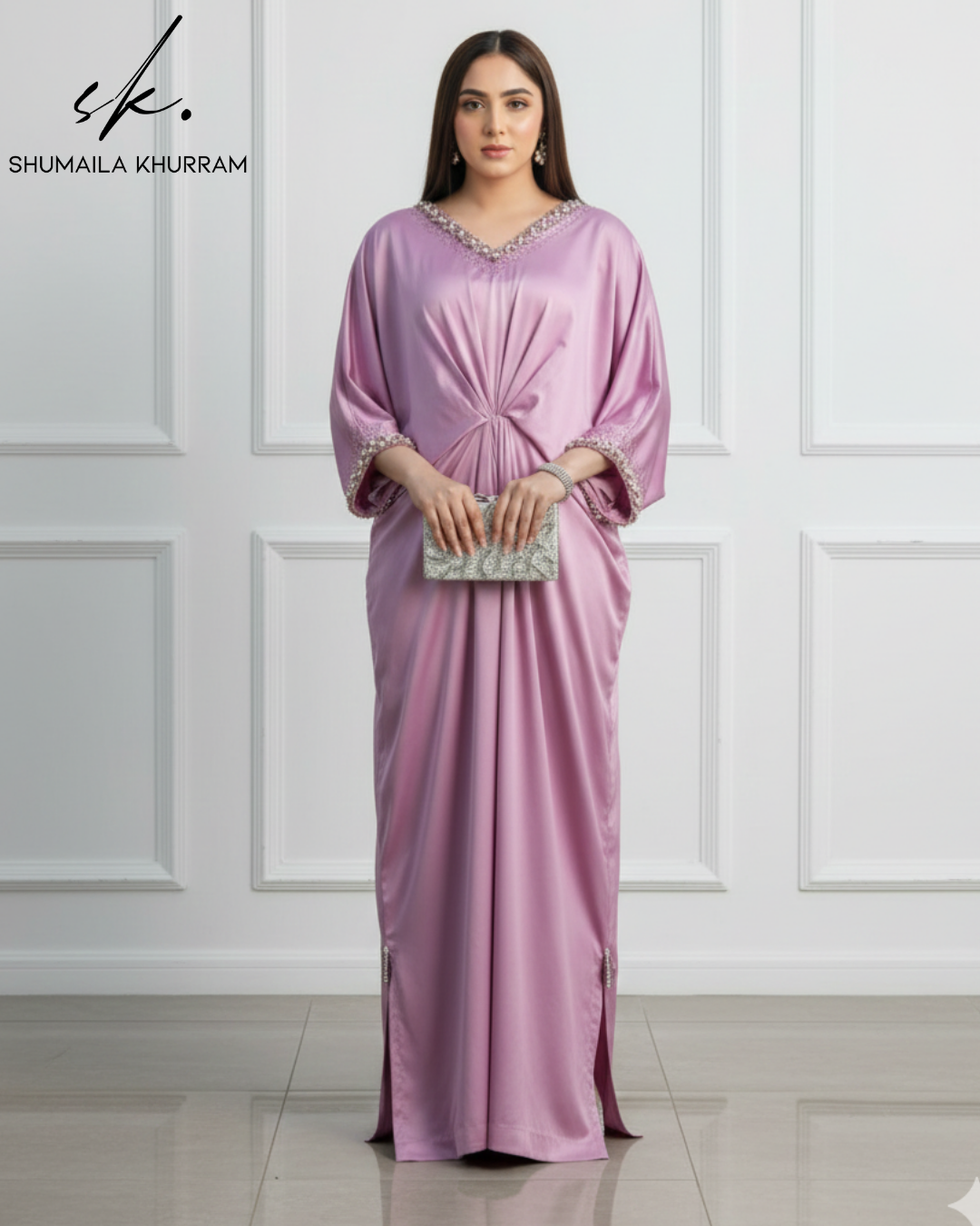 Timeless Elegance Redefined. ✨ Presenting our latest statement piece: a luxurious Silk Kaftaan in a breathtaking shade of Lilac.