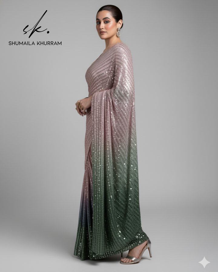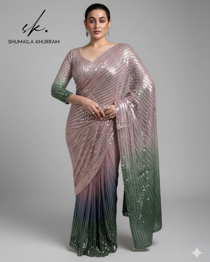 Elegance Redefined: Introducing the Ombre Sequin Saree ✨