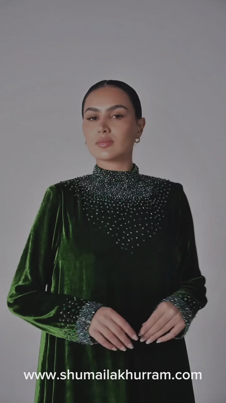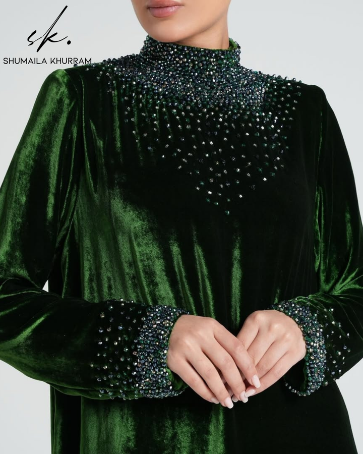 Exude timeless elegance in the 'Velours Emerald' by SHUMAILA KHURRAM.